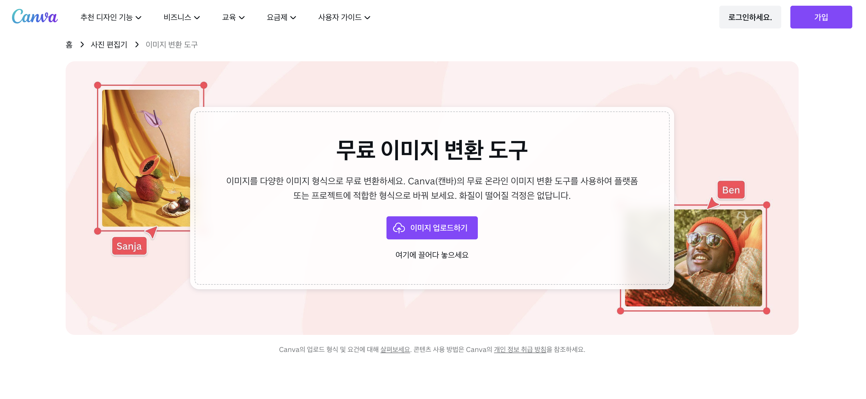 이미지파일 확장자 변환 웹사이트[canva]바로가기